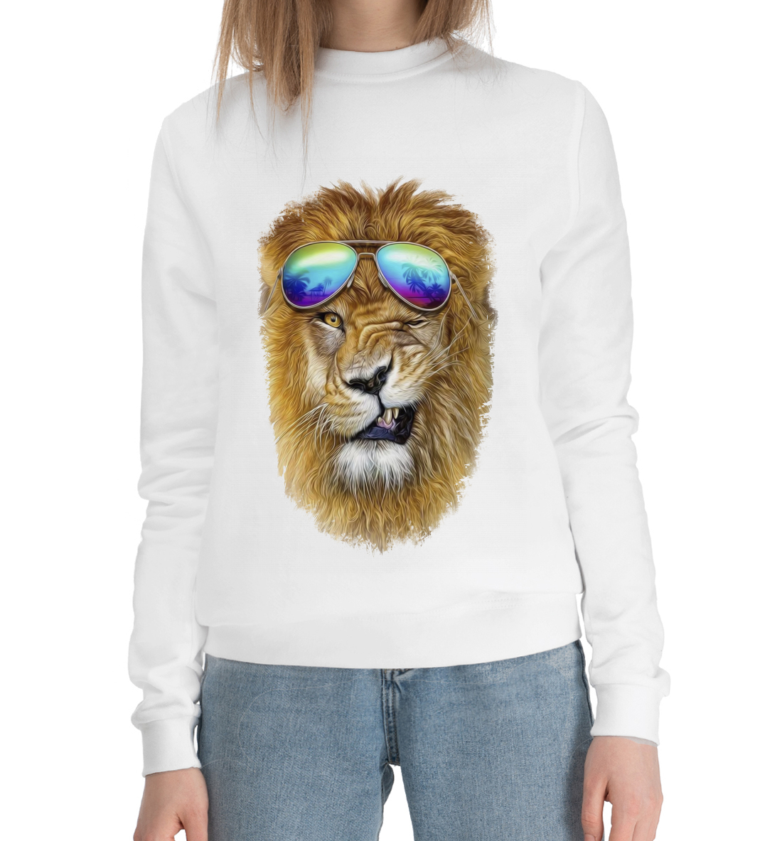 Женский хлопковый свитшот с принтом «Лев в очках»