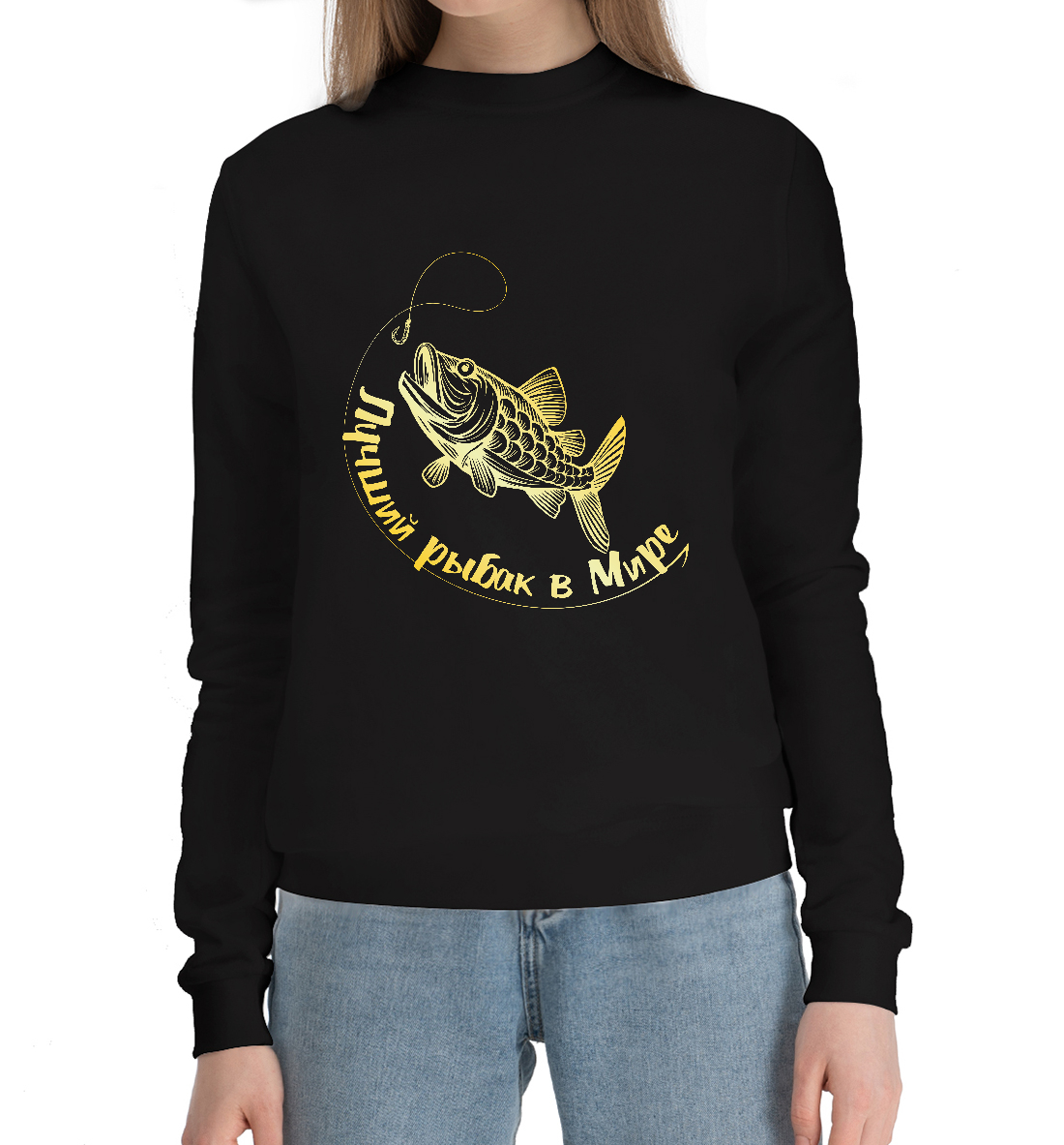 Женский хлопковый свитшот с принтом «Лучший рыбак в мире»