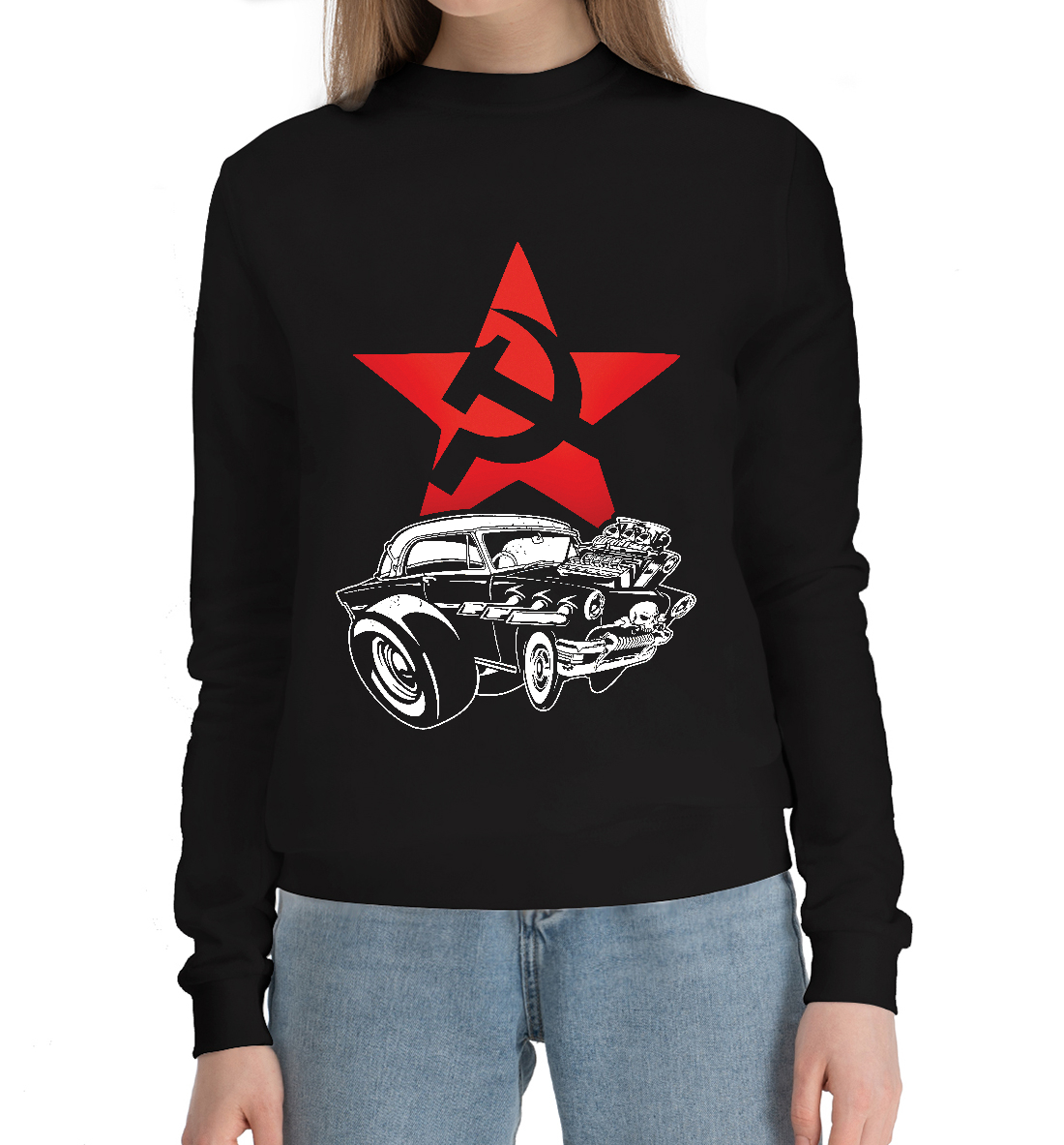 Женский хлопковый свитшот с принтом «Мечта советского автолюбителя»