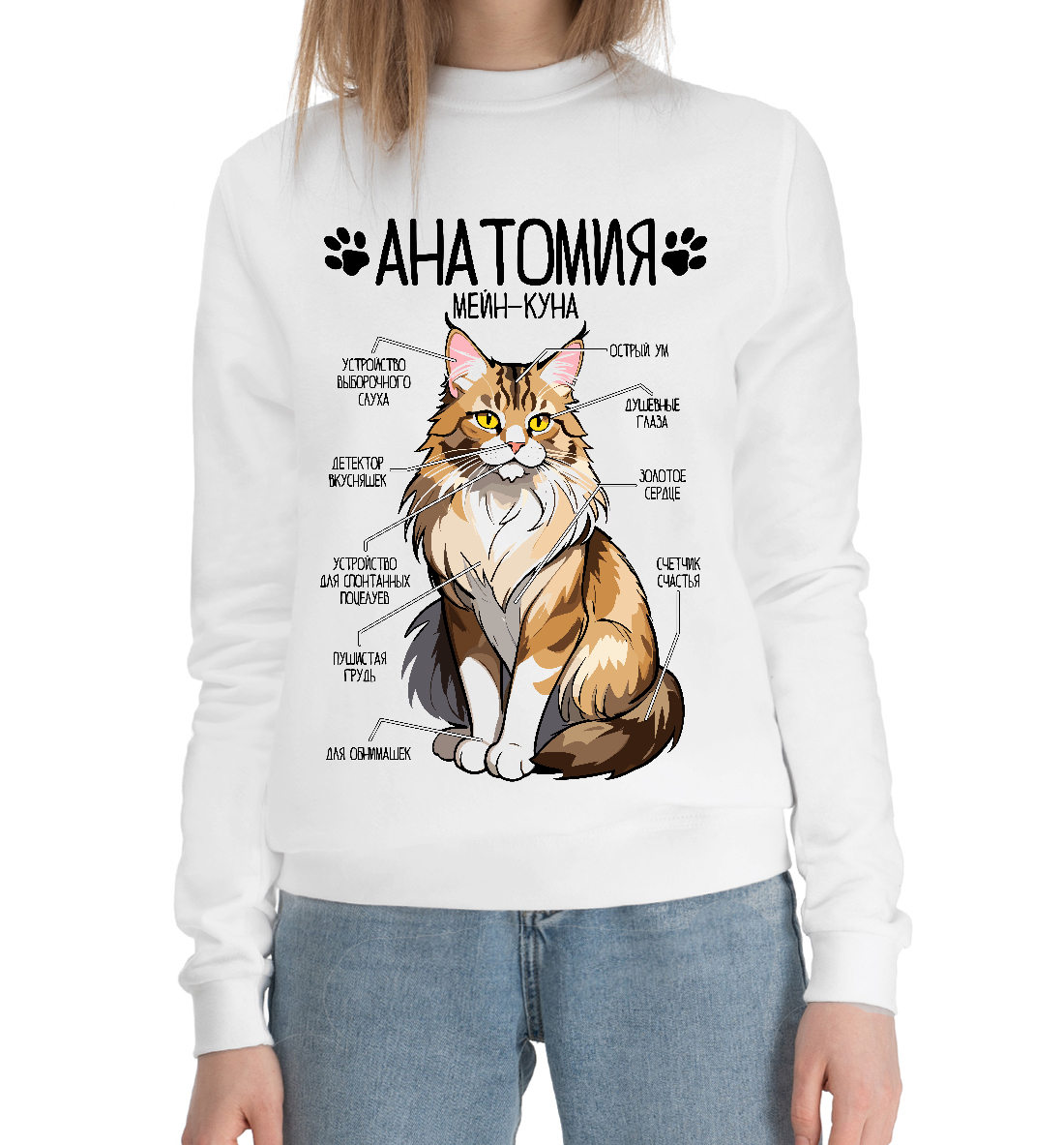 Женский хлопковый свитшот с принтом «Мейн-кун анатомия»