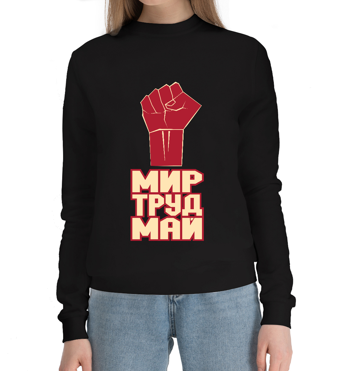 Женский хлопковый свитшот с принтом «Мир Труд Май»