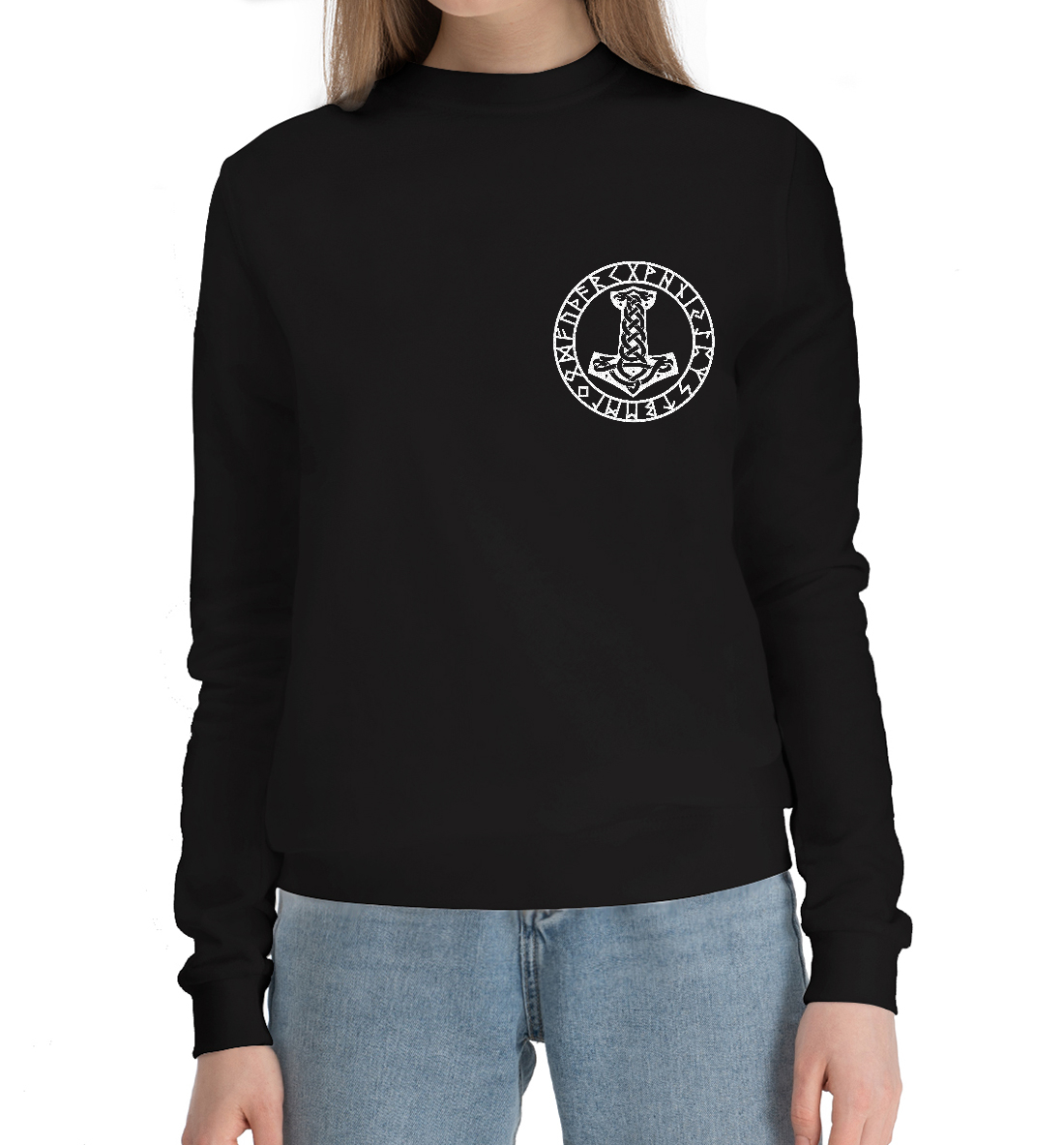 Женский хлопковый свитшот с принтом «Молот Тора (Мьёльнир)»