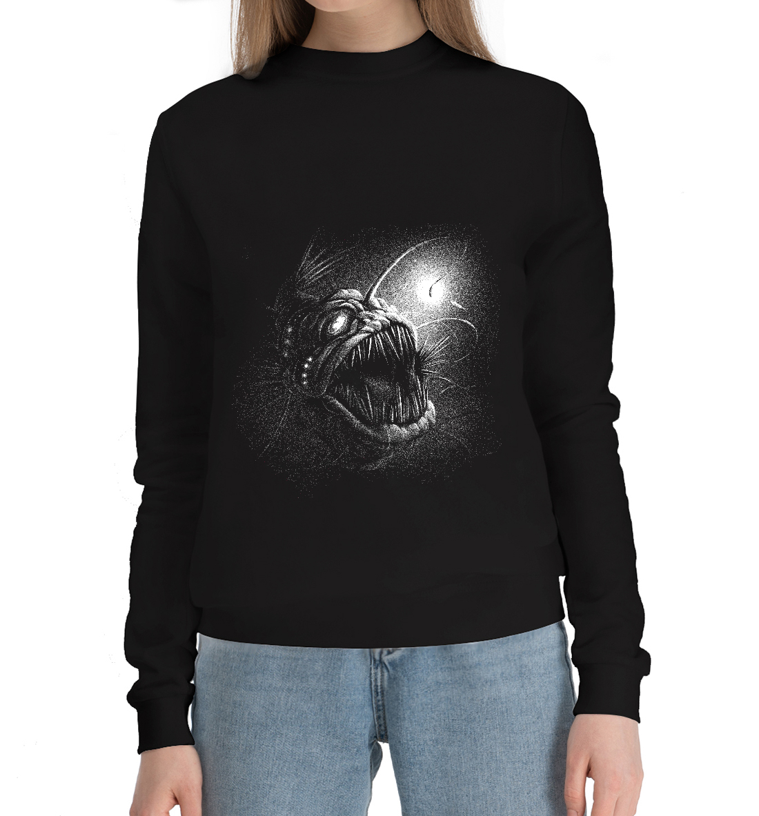 Женский хлопковый свитшот с принтом «Морской чёрт - рисунок карандашом»