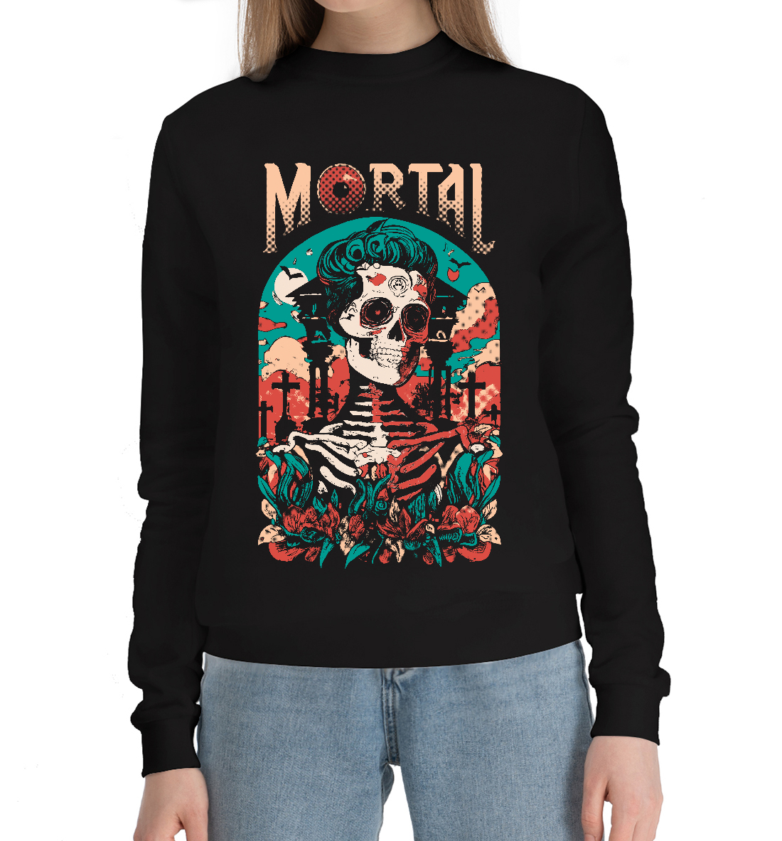 Женский хлопковый свитшот с принтом «Mortal скелетон»