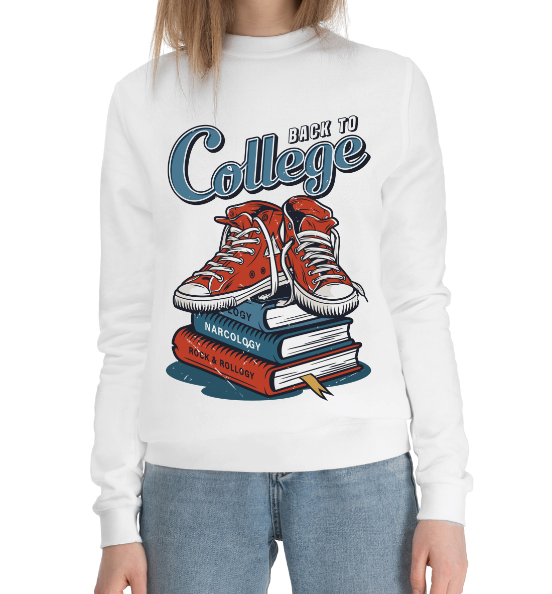 Женский хлопковый свитшот с принтом «Назад в коледж»