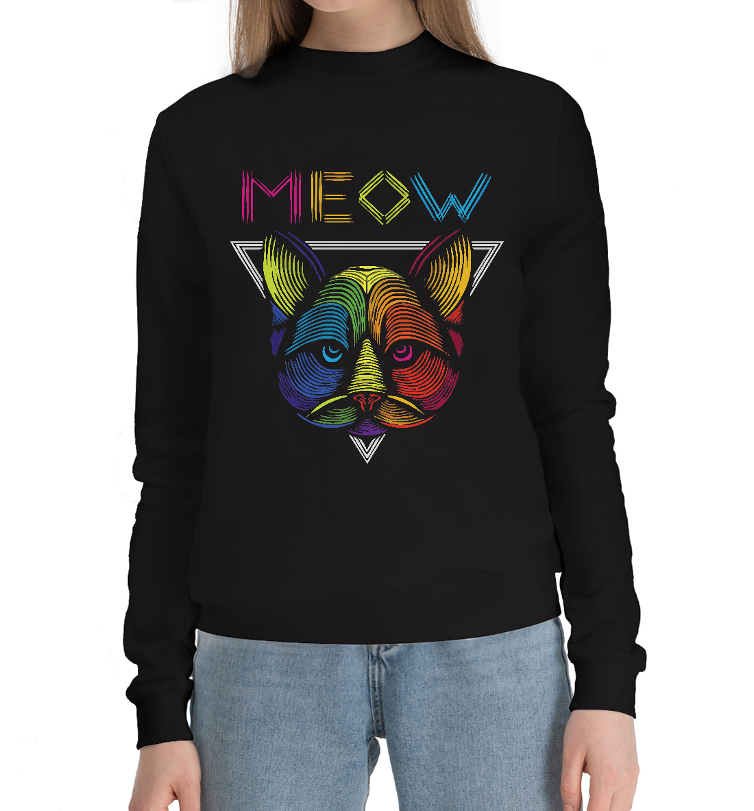 Женский хлопковый свитшот с принтом «Неоновый кот»