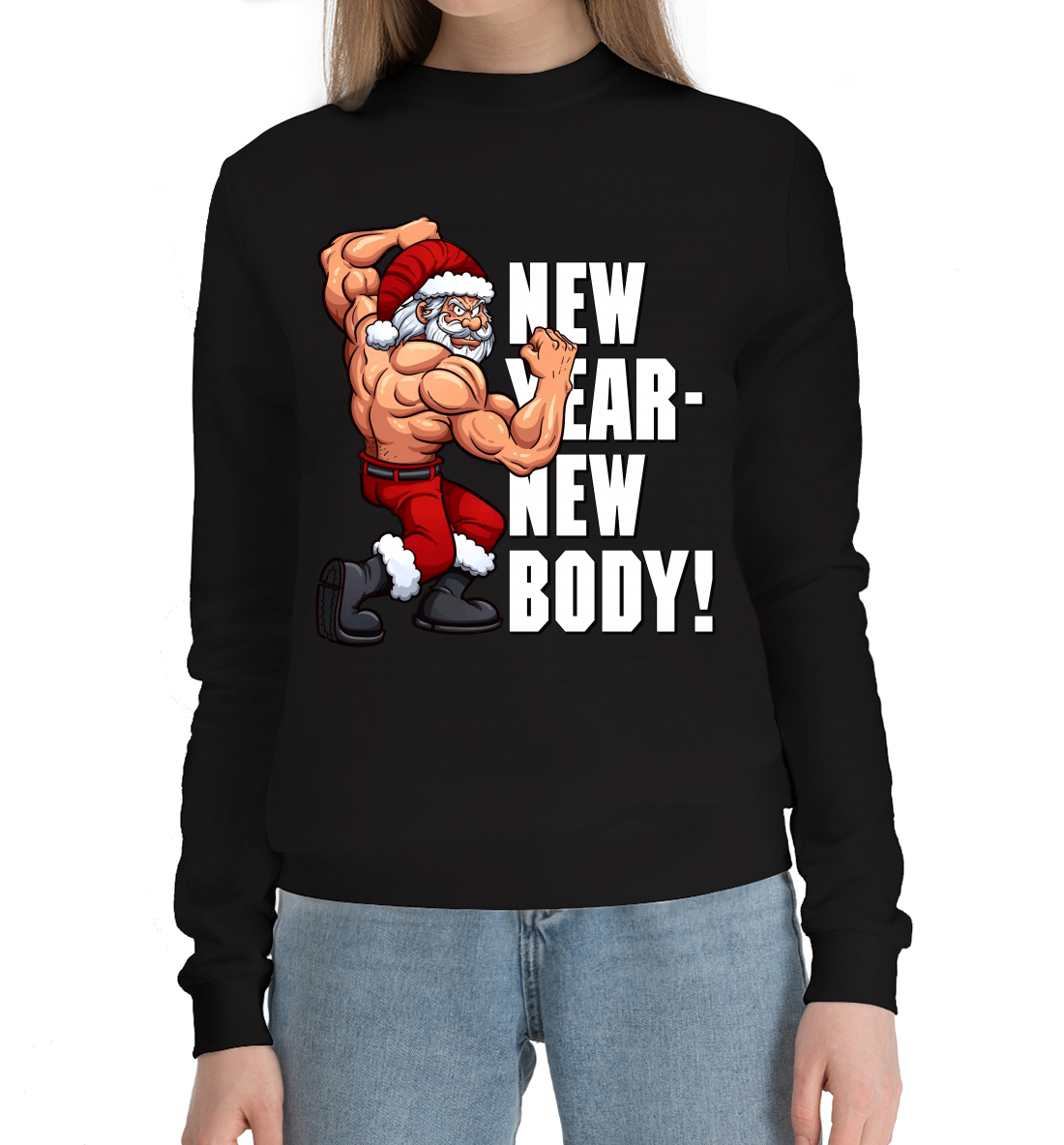 Женский хлопковый свитшот с принтом «New Year - New Body!»