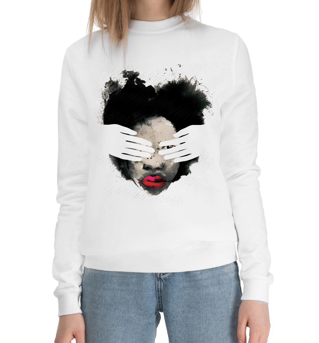 Женский хлопковый свитшот с принтом «Ничего не вижу»