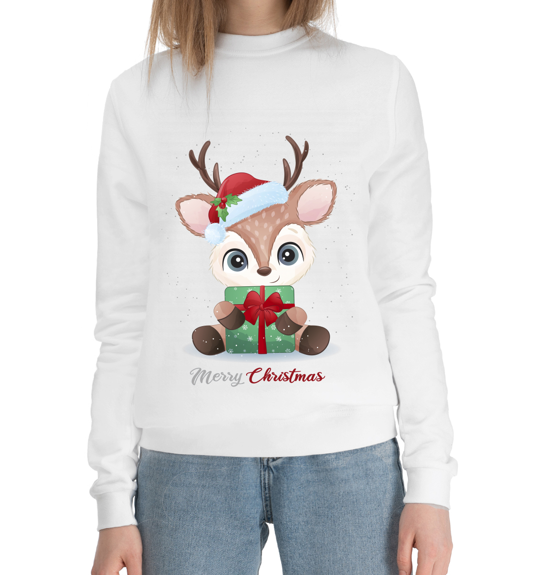 Женский хлопковый свитшот с принтом «Новогодний олень»