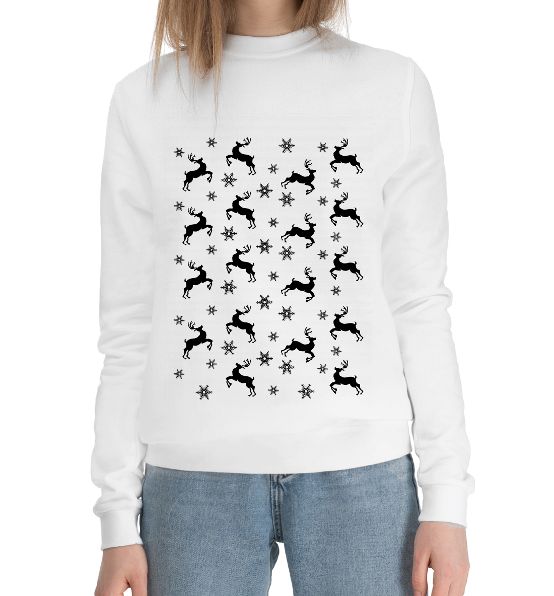 Женский хлопковый свитшот с принтом «Новогодний олень»