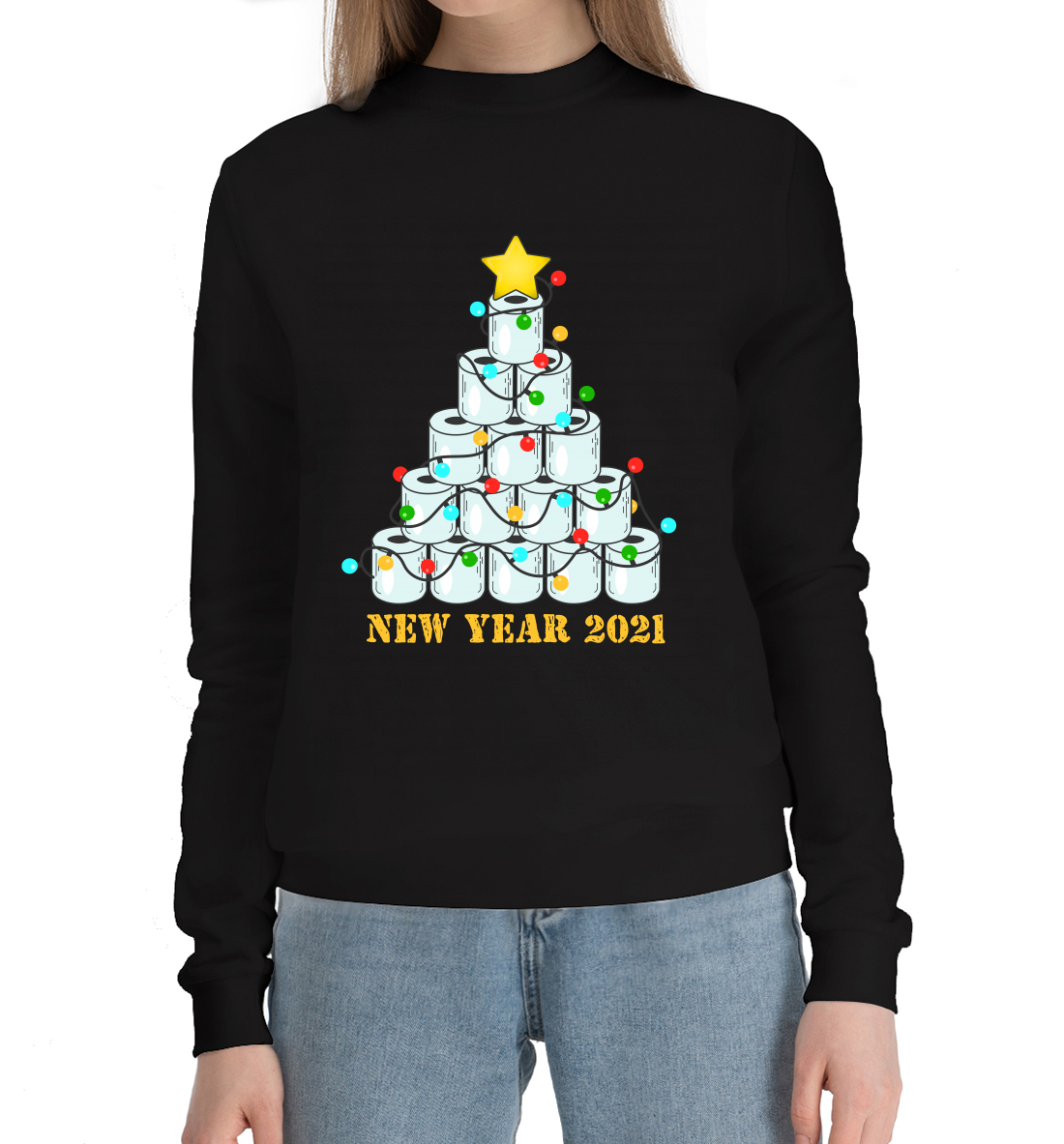 Женский хлопковый свитшот с принтом «Новый год 2021»
