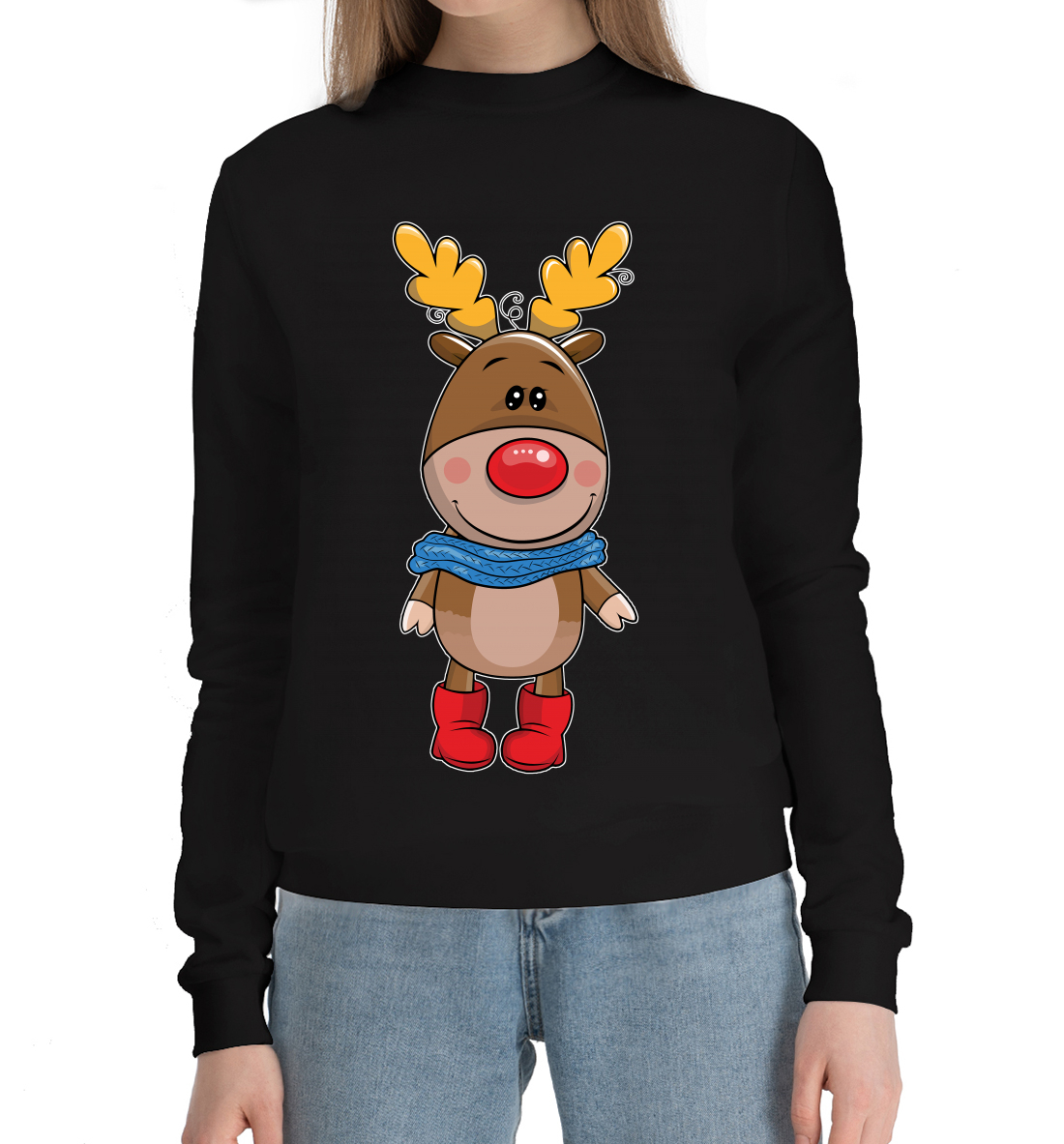 Женский хлопковый свитшот с принтом «Олень в шарфике»