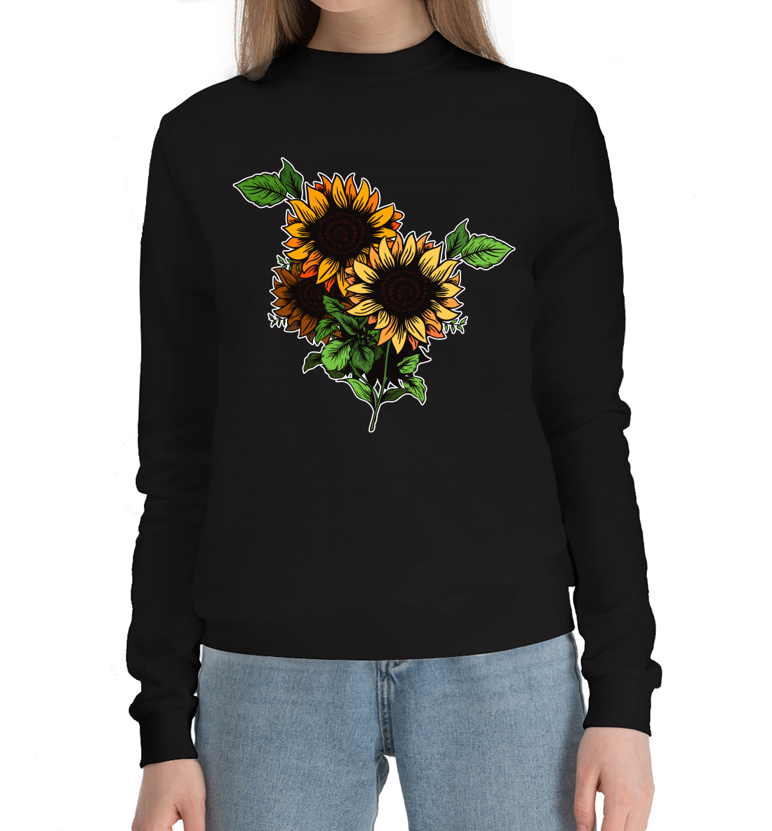 Женский хлопковый свитшот с принтом «Подсолнухи»