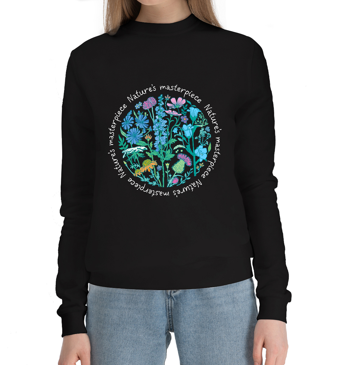 Женский хлопковый свитшот с принтом «Полевые цветы в круге»