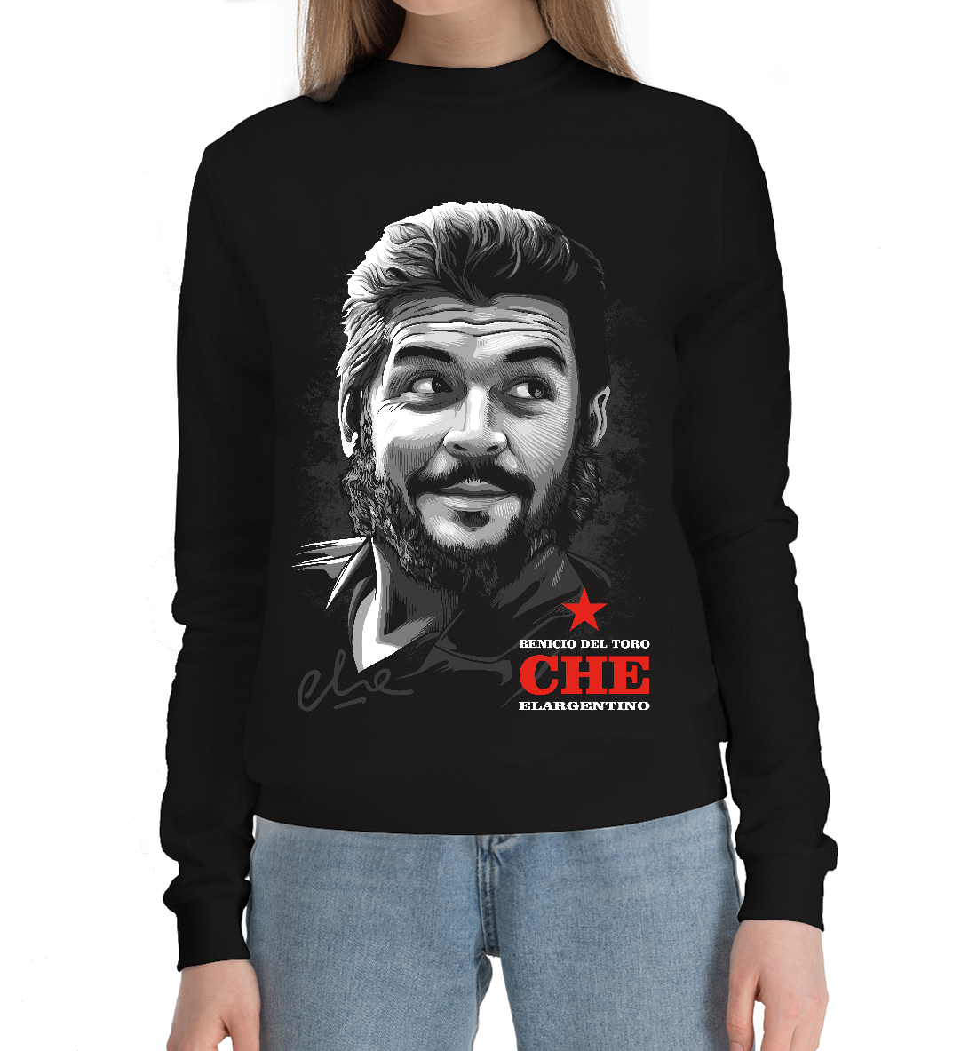 Женский хлопковый свитшот с принтом «Портрет Че Гевары (чёрный фон)»