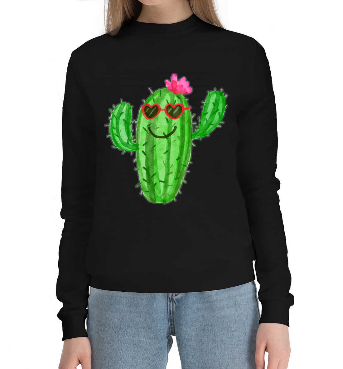 Женский хлопковый свитшот с принтом «Позитивный кактус»