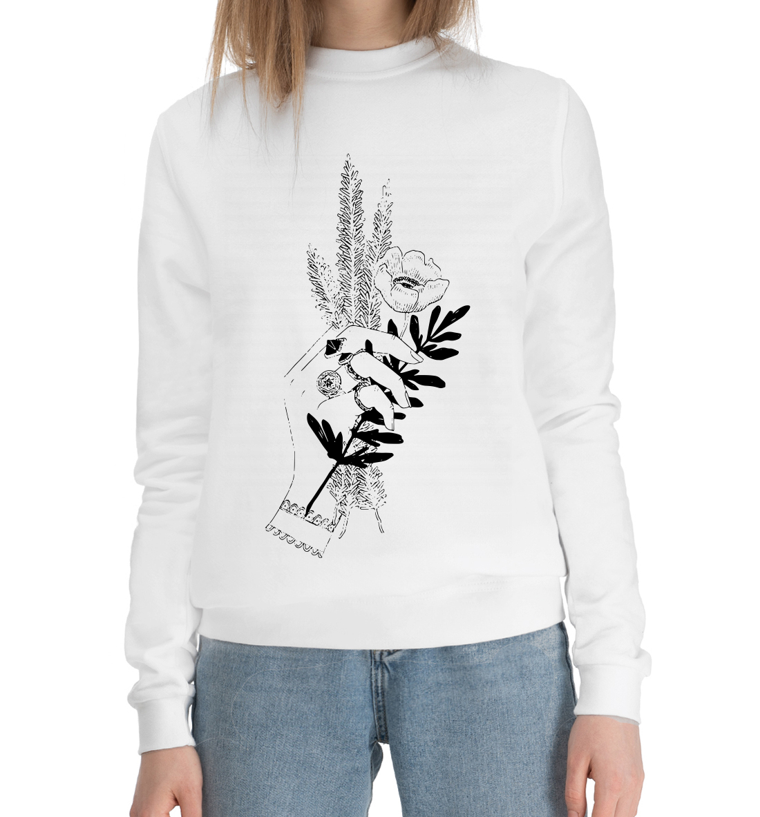 Женский хлопковый свитшот с принтом «Руки черные цветы»