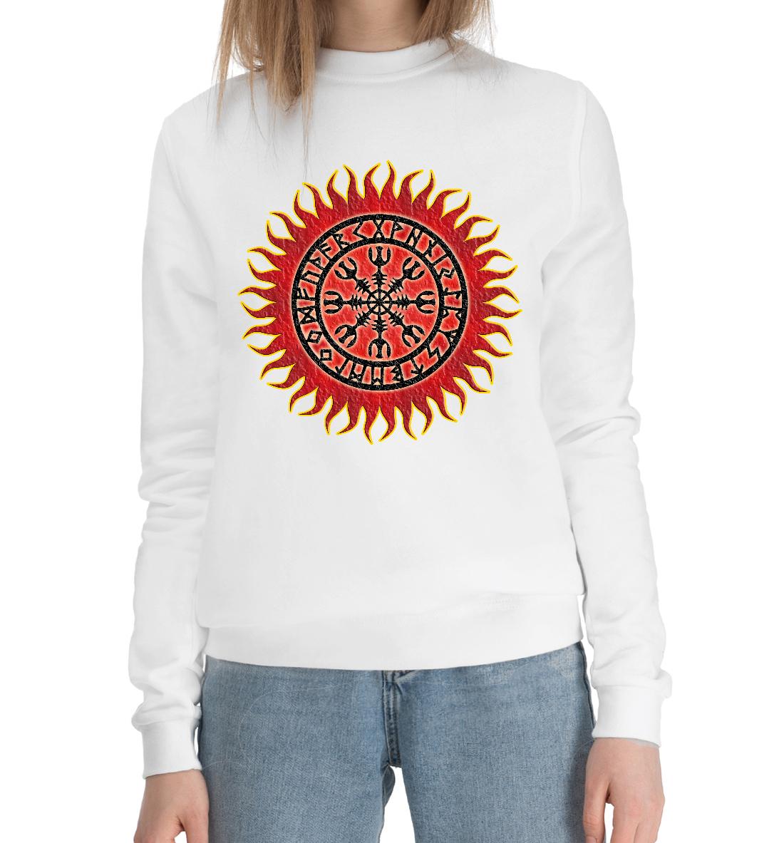 Женский хлопковый свитшот с принтом «Рунический Шлем Ужаса»