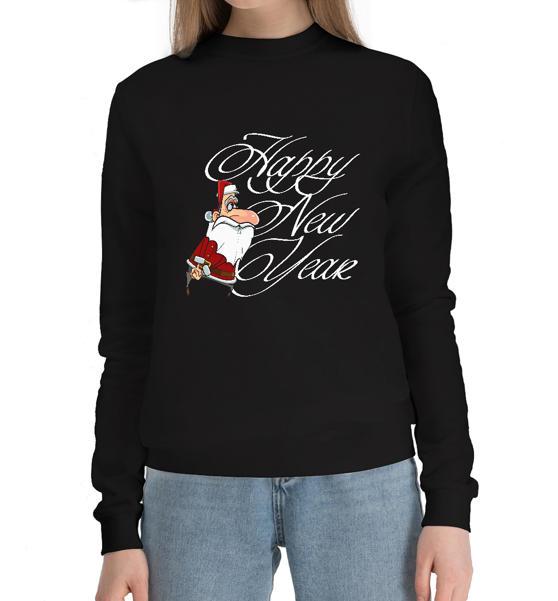 Женский хлопковый свитшот с принтом «Санта Клаус Happy New Year»