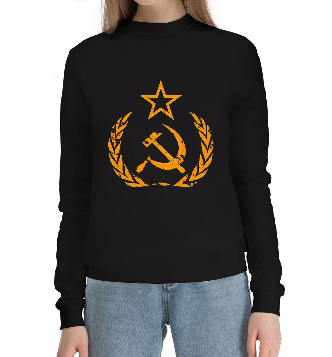 Женский хлопковый свитшот с принтом «серп и молот на красном фоне»