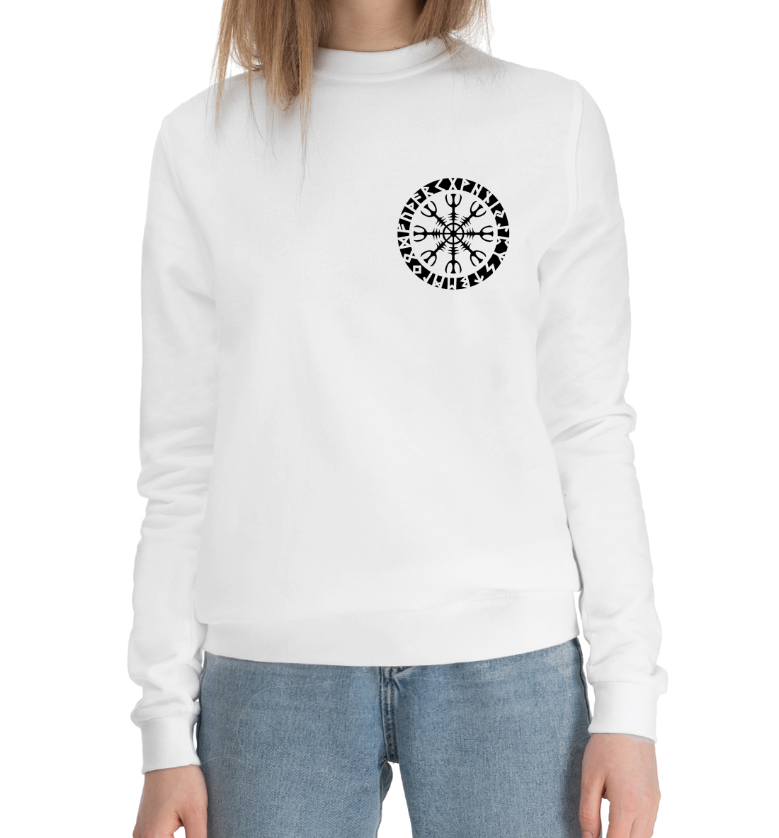 Женский хлопковый свитшот с принтом «Шлем ужасов в круге рун»