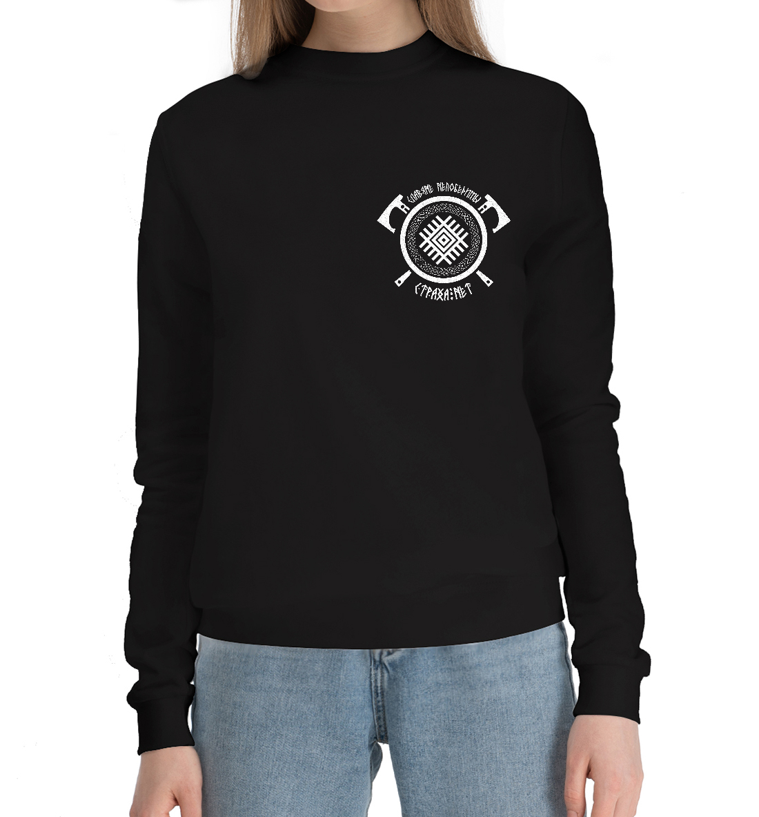 Женский хлопковый свитшот с принтом «Символ Русь(страха нет)»