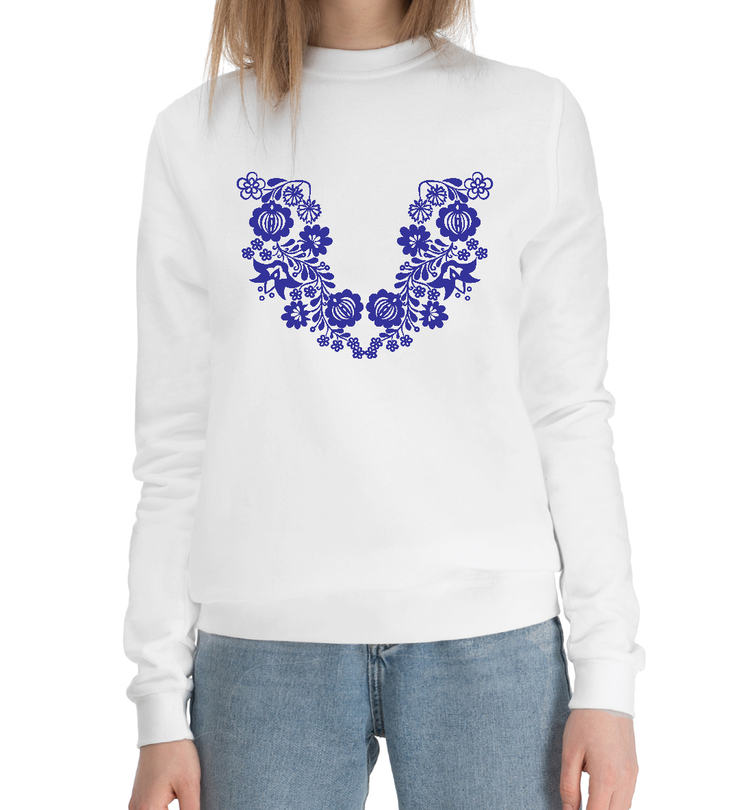 Женский хлопковый свитшот с принтом «Синий славянский узор»