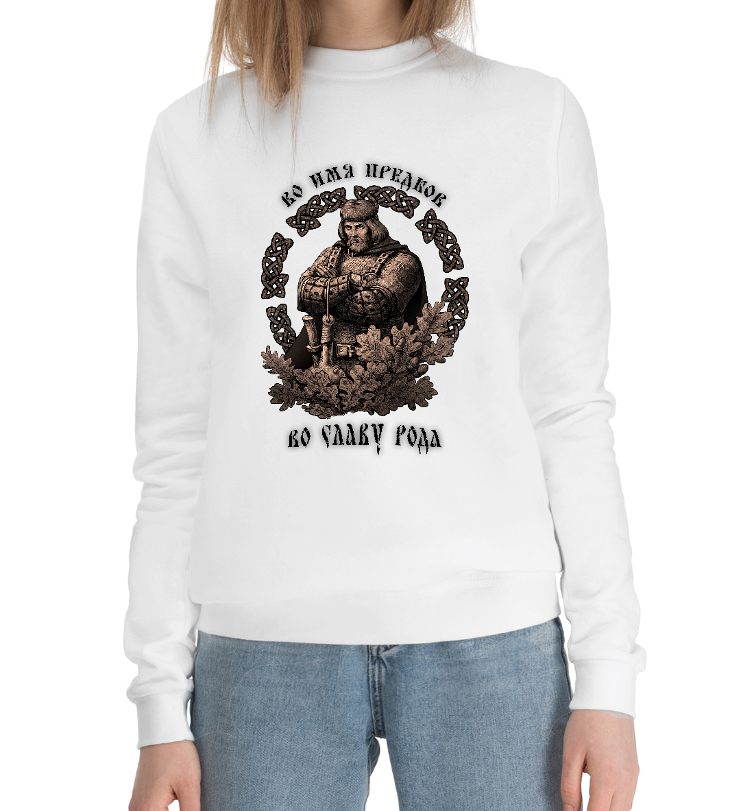 Женский хлопковый свитшот с принтом «Славянский воин РОДа»