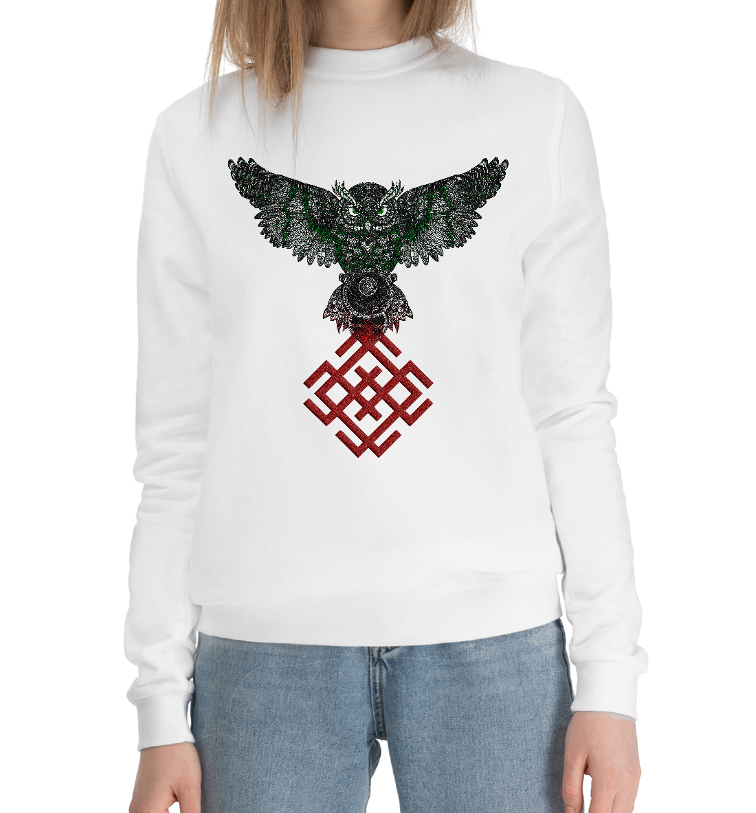 Женский хлопковый свитшот с принтом «Сова с символом Молвинец»