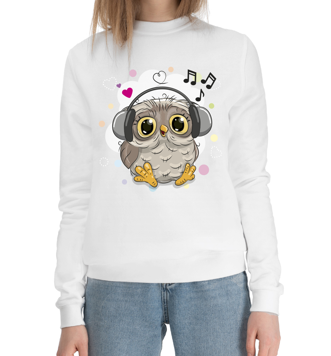 Женский хлопковый свитшот с принтом «Совушка-меломан»