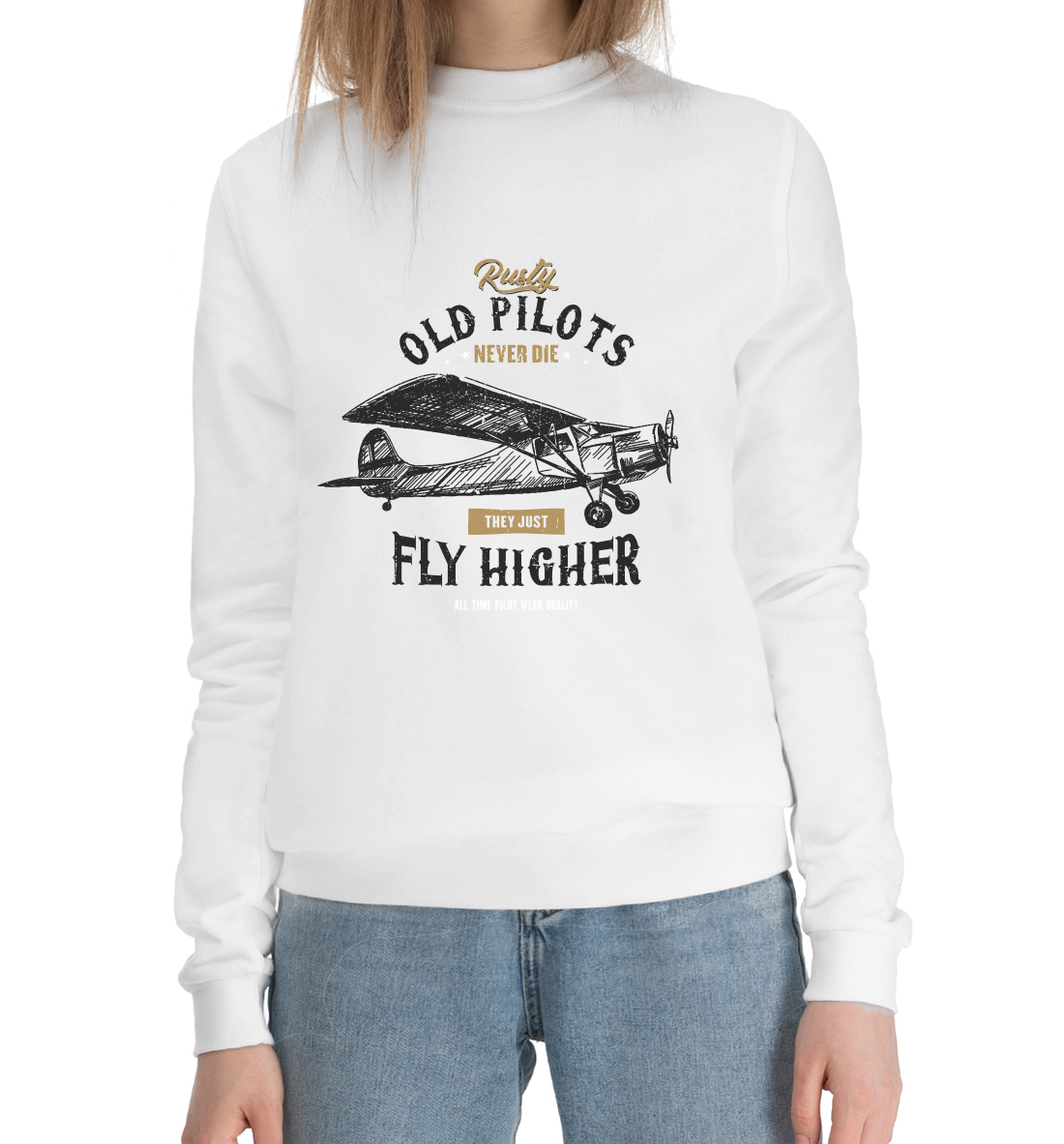 Женский хлопковый свитшот с принтом «Старые пилоты не умирают - они просто летают выше»
