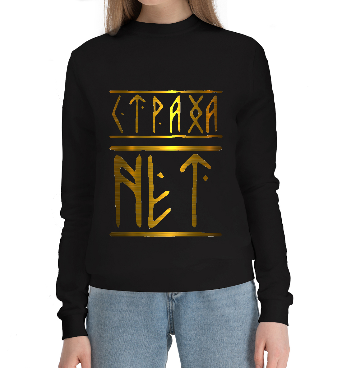 Женский хлопковый свитшот с принтом «Страха нет славянский шрифт»