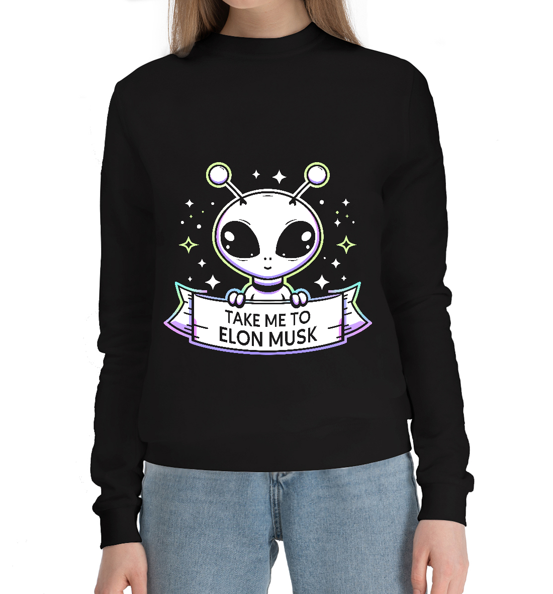 Женский хлопковый свитшот с принтом «Take me to Elon Musk»
