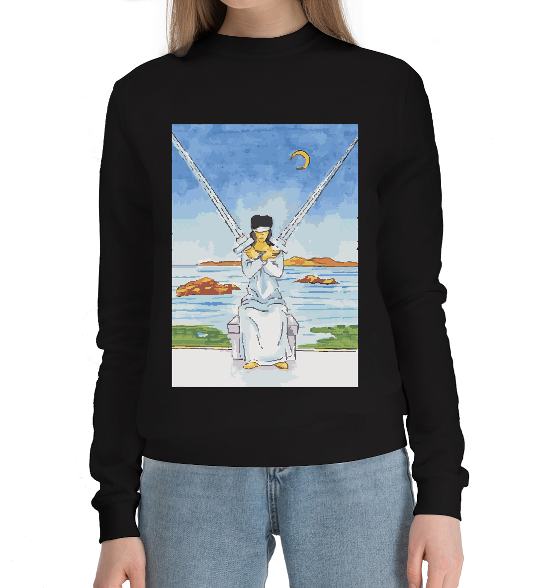 Женский хлопковый свитшот с принтом «Таро Уэйта - Двойка Мечей»