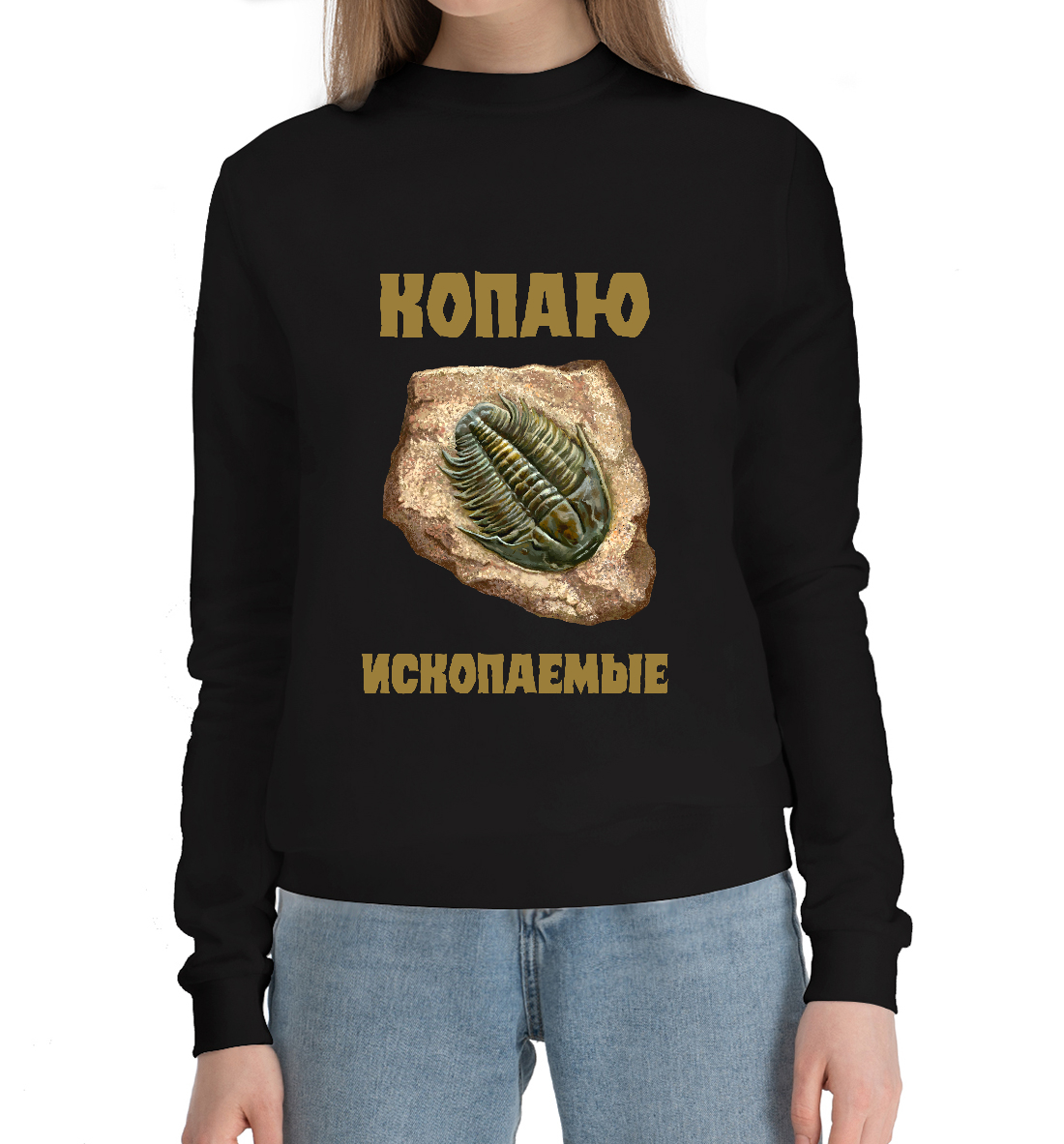Женский хлопковый свитшот с принтом «Трилобит на камне копаю ископаемые»