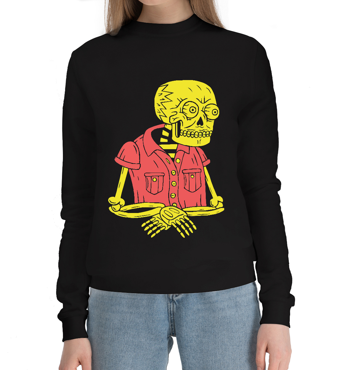 Женский хлопковый свитшот с принтом «Уставший скелет»