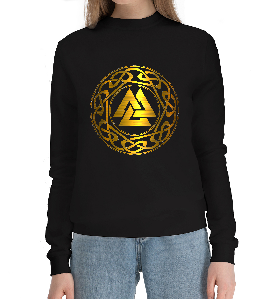 Женский хлопковый свитшот с принтом «Валькнут символ бога Одина»