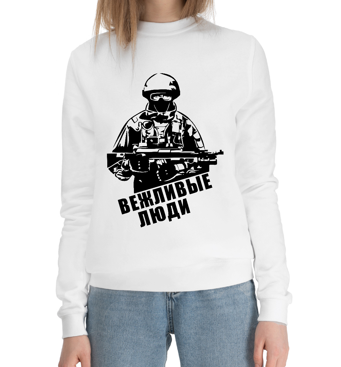 Женский хлопковый свитшот с принтом «Вежливые люди - Армия России»