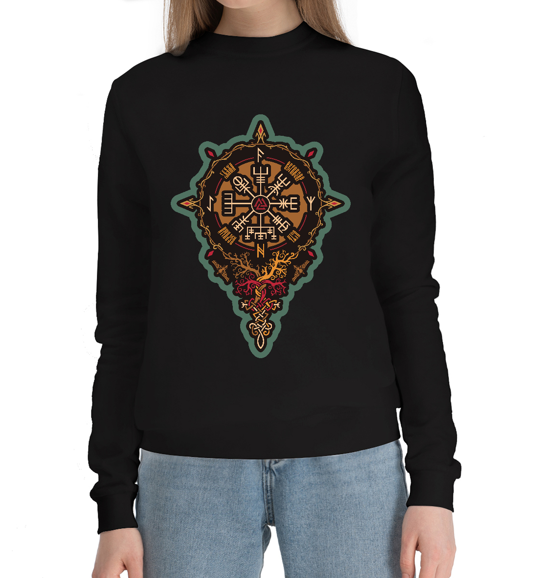 Женский хлопковый свитшот с принтом «Вегвизир - укажи верный путь»