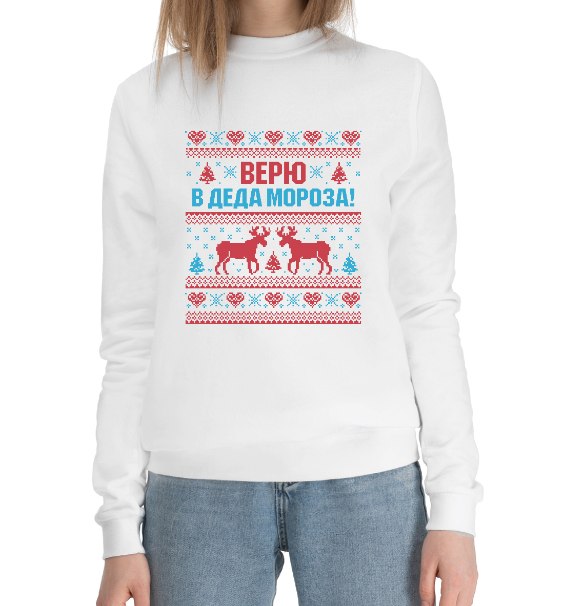 Женский хлопковый свитшот с принтом «Верю в Деда Мороза»