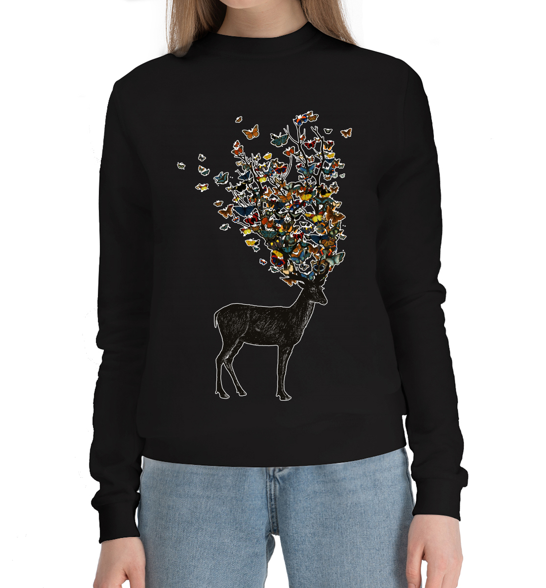 Женский хлопковый свитшот с принтом «Весенний олень»