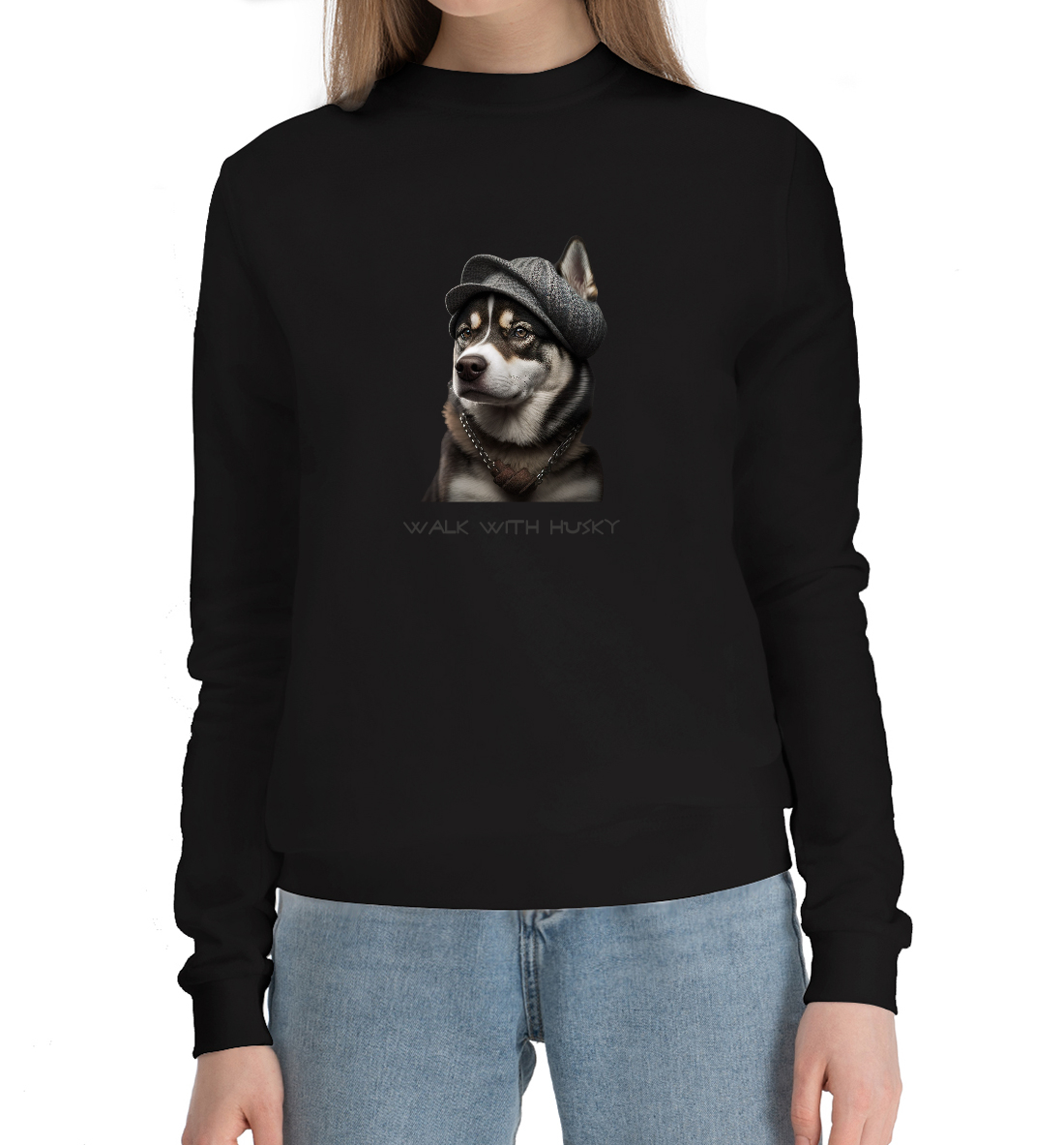 Женский хлопковый свитшот с принтом «WALK WITH HUSKY»