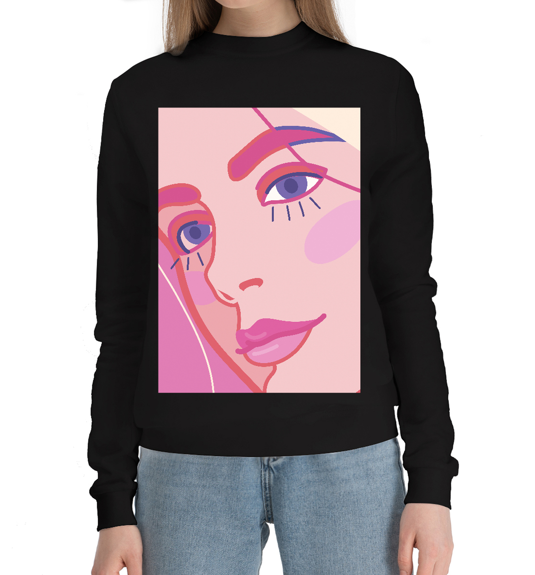 Женский хлопковый свитшот с принтом «Яркий женский портрет»