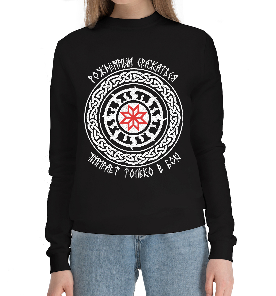 Женский хлопковый свитшот с принтом «Знак РатиБорец в Коловрате»