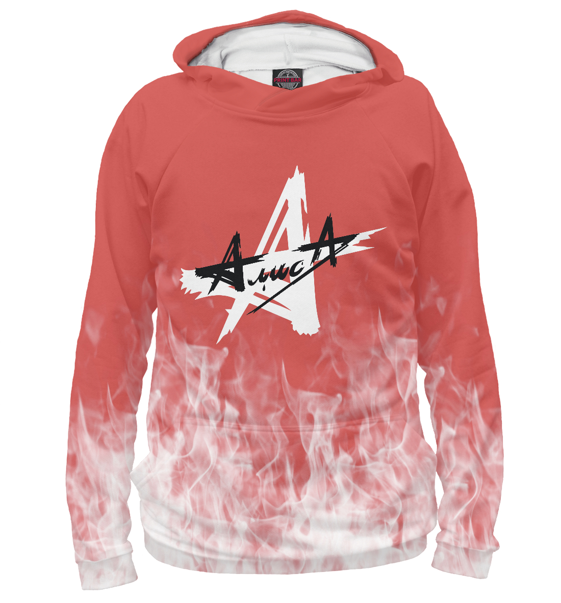 Женское худи с принтом «Алиса - рок группа Пламя»
