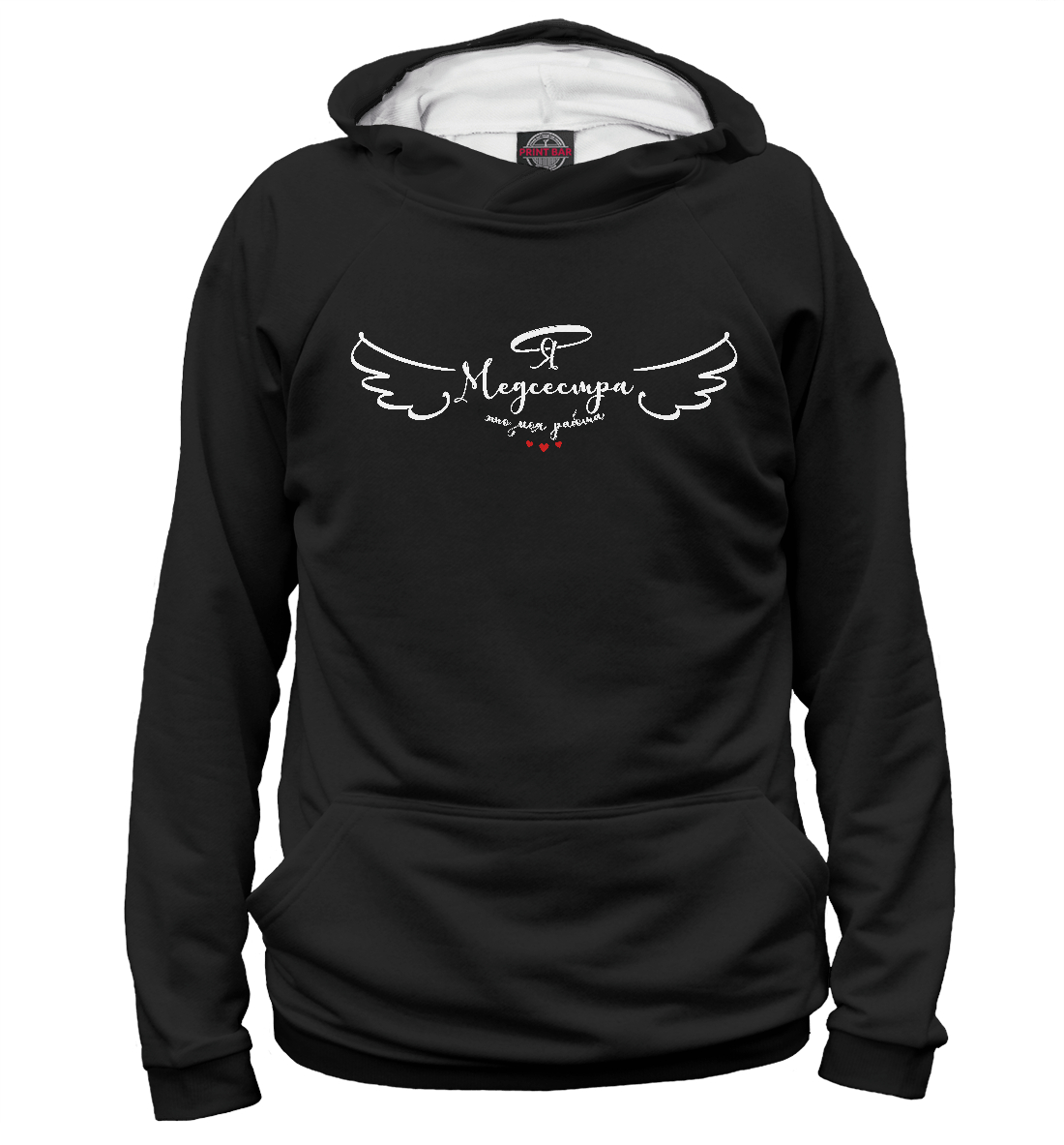 Женское худи с принтом «Медсестра (черный фон)»