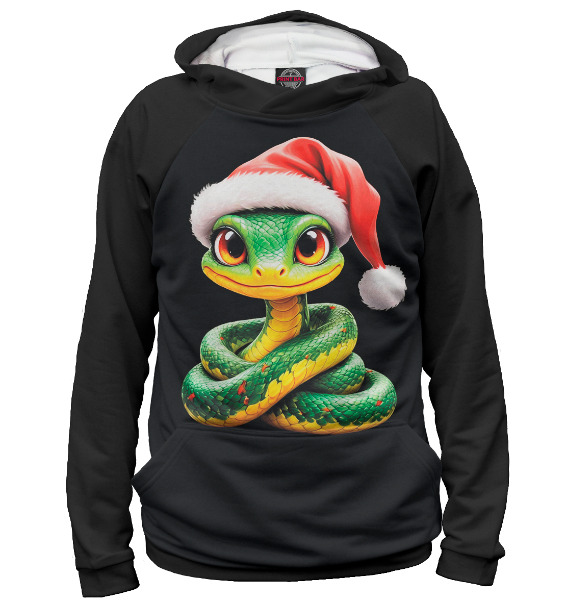 Женское худи с принтом «Новогодняя змея на черном фоне»