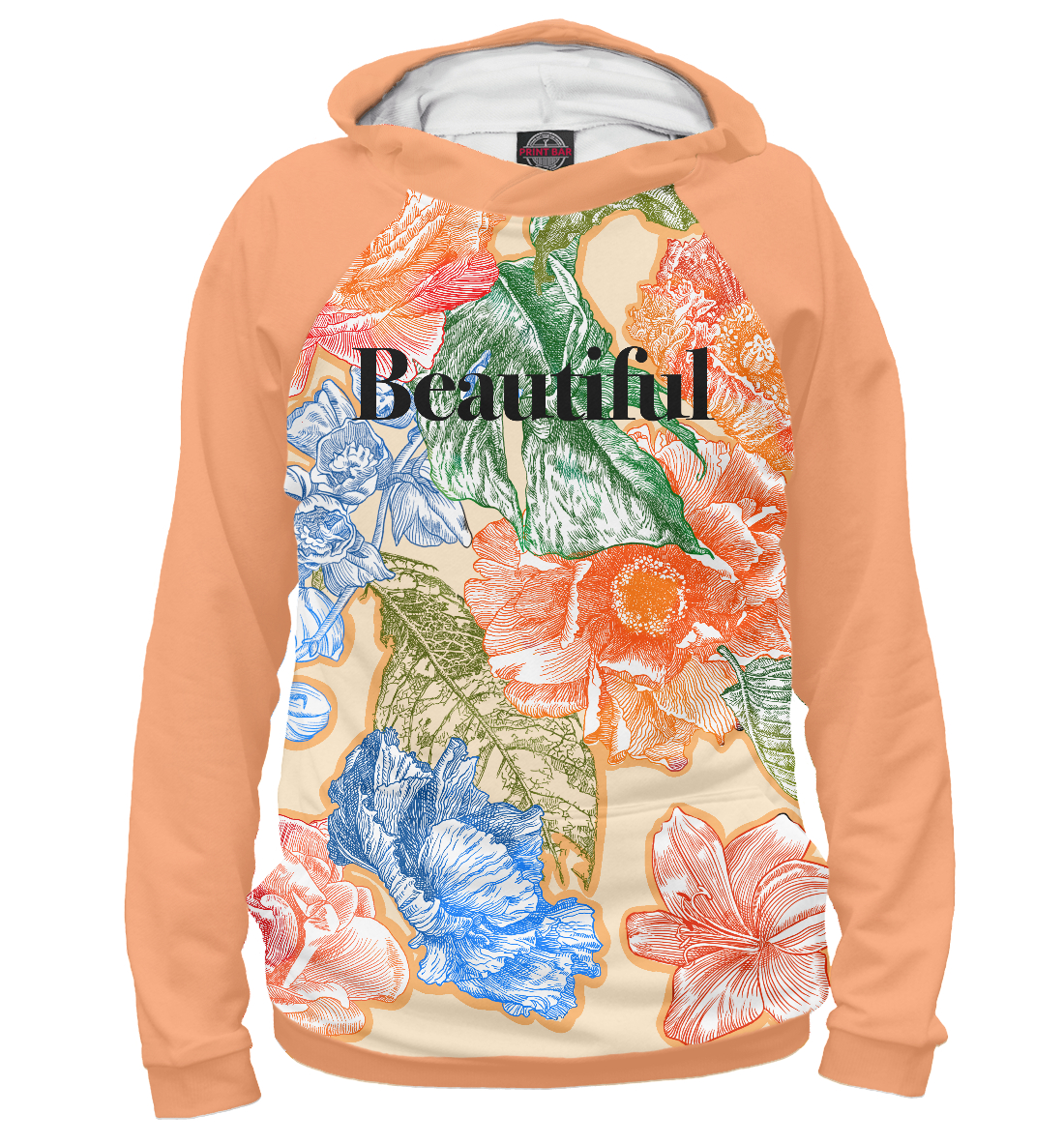 Женское худи с принтом «Сухоцветы на персиковом фоне»