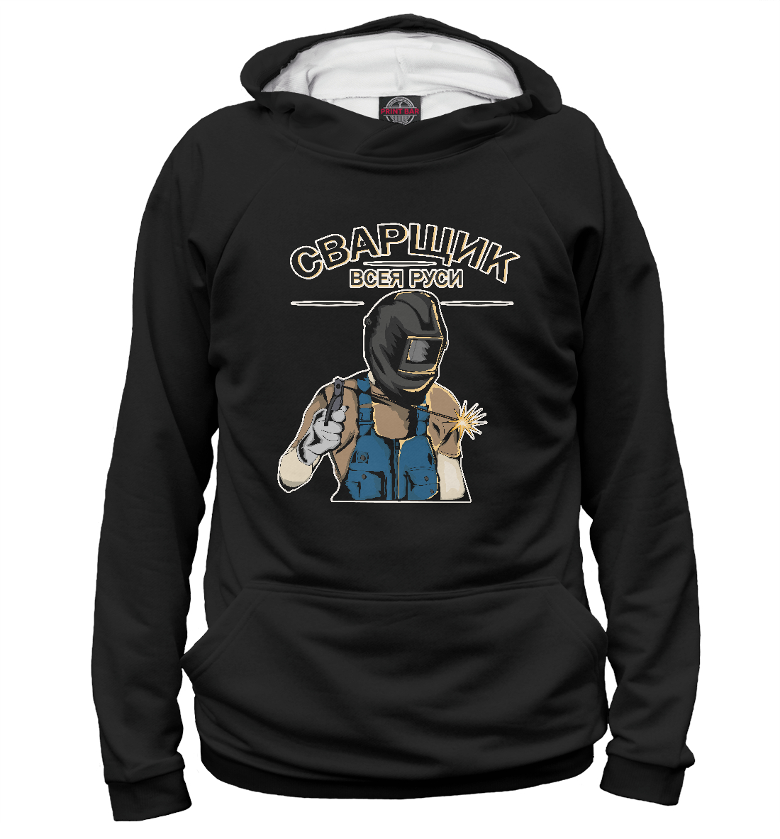 Женское худи с принтом «Сварщик всея Руси на черном фоне»