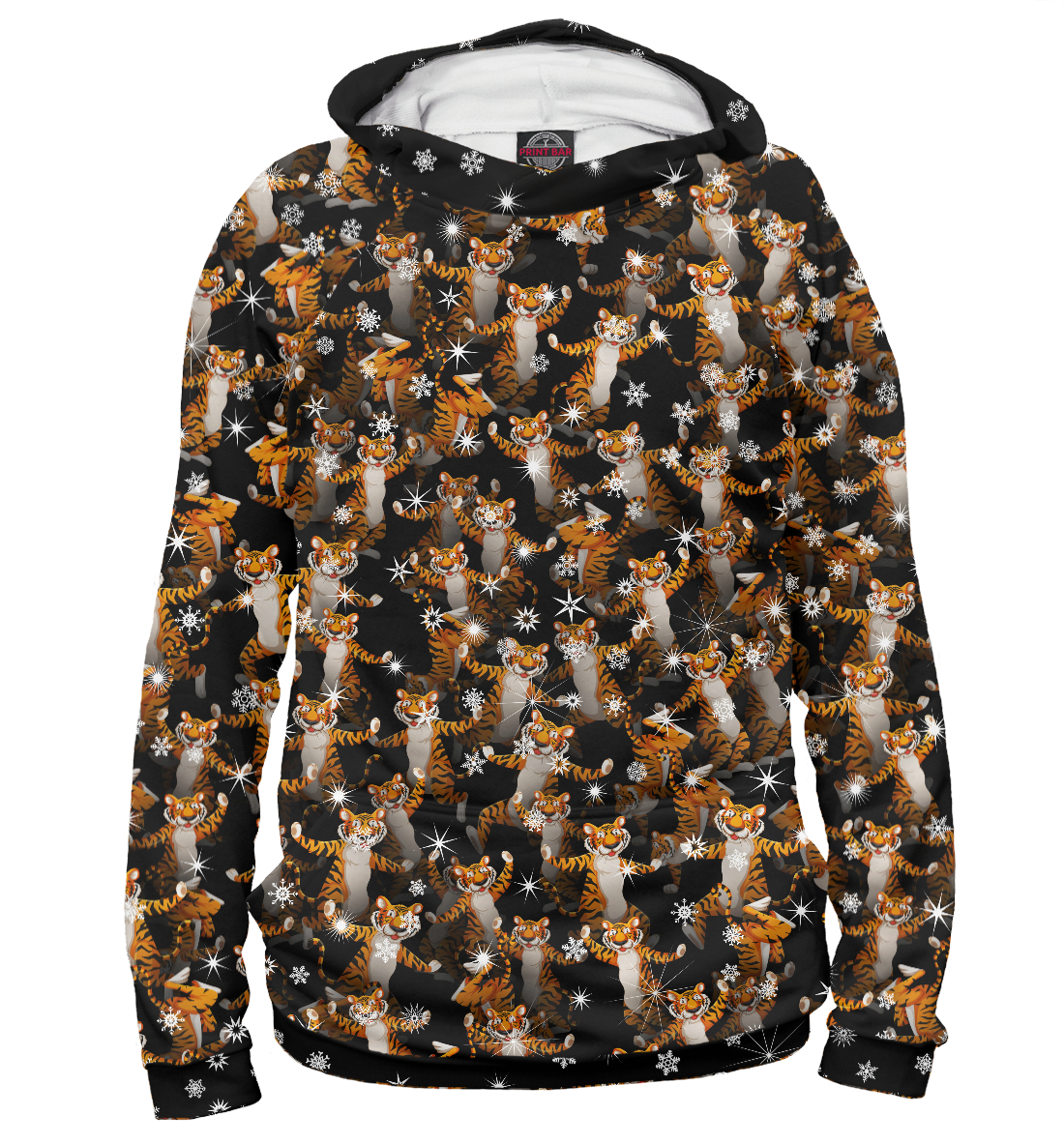 Женское худи с принтом «Тигры пляшут Новый Год»